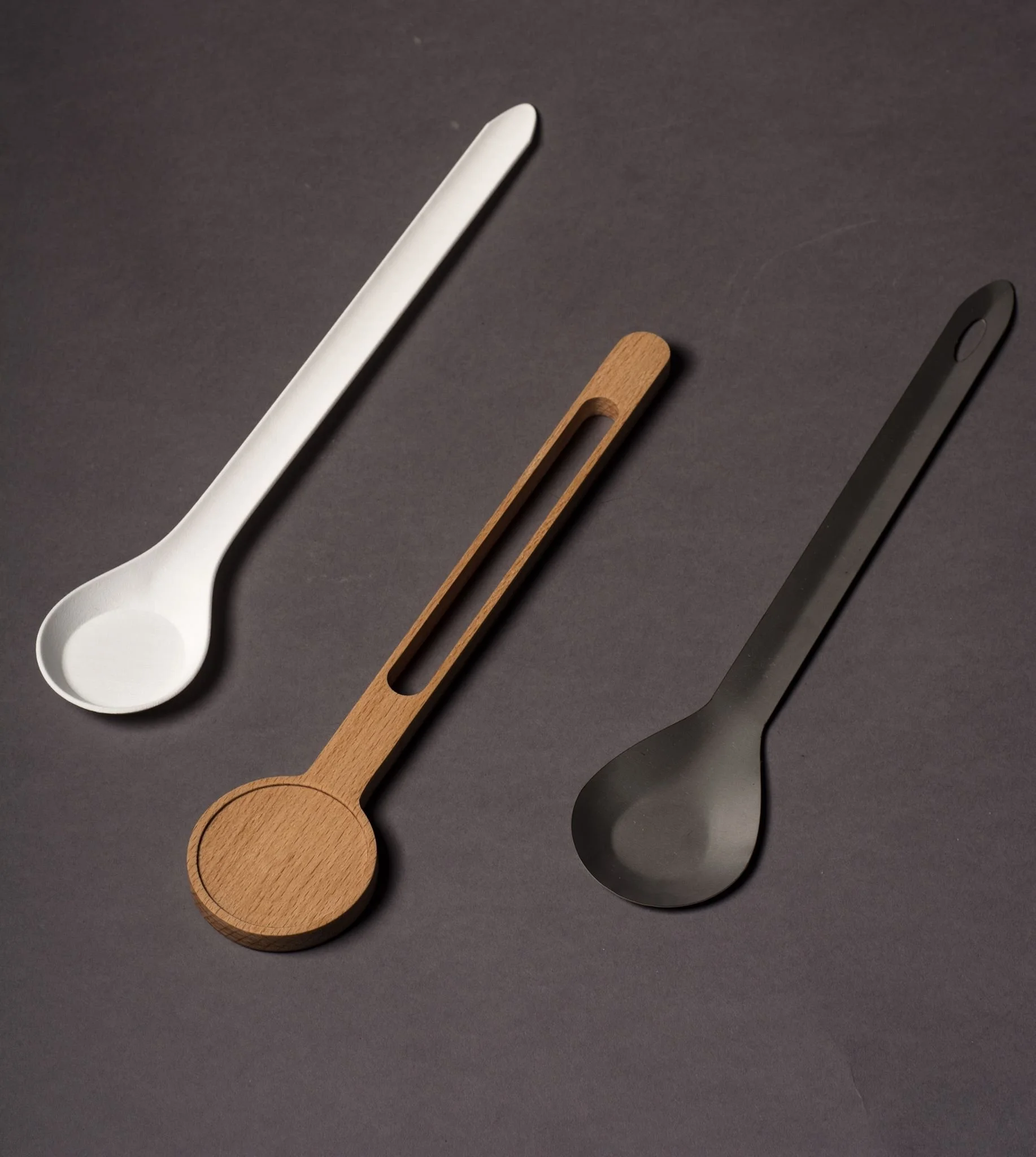 This project focused on exploring a collection of cutlery made from three distinct materials: wood, plastic, and metal. The objective was to identify commonalities among the spoons while simultaneously highlighting the unique possibilities and characteristics inherent to each material.